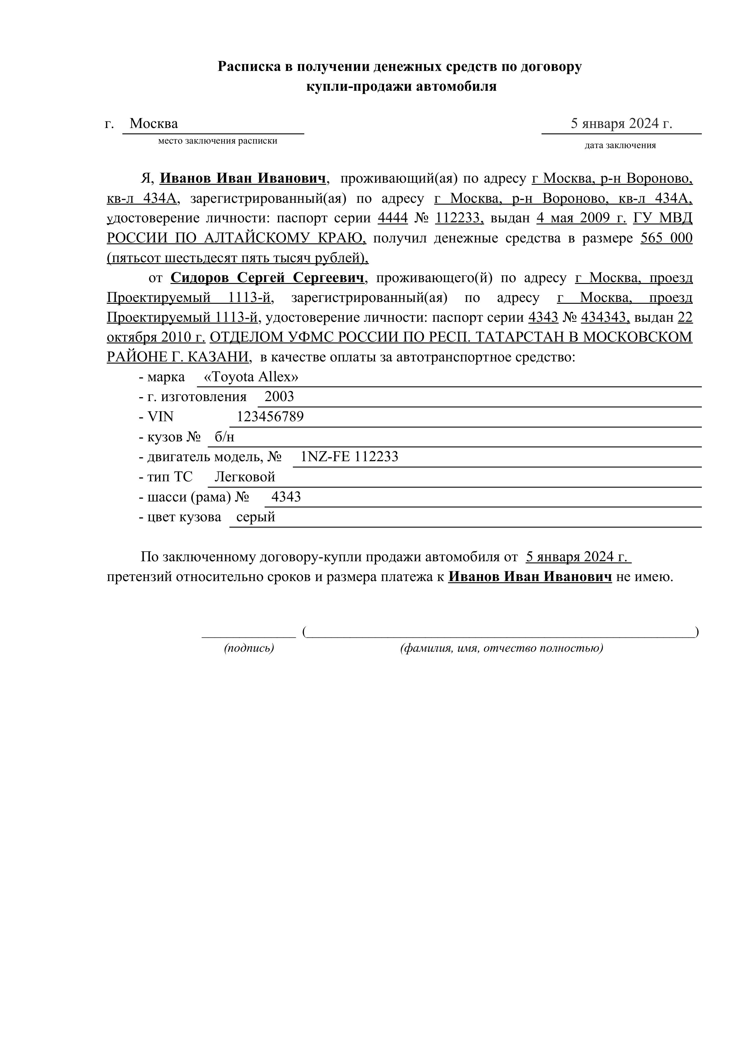 Это официальный документ, подтверждающий факт передачи денежных средств от покупателя к продавцу при покупке автомобиля. Расписка фиксирует, что продавец действительно получил указанную сумму денег, а покупатель выполнил свои финансовые обязательства.Для чего нужна расписка?
